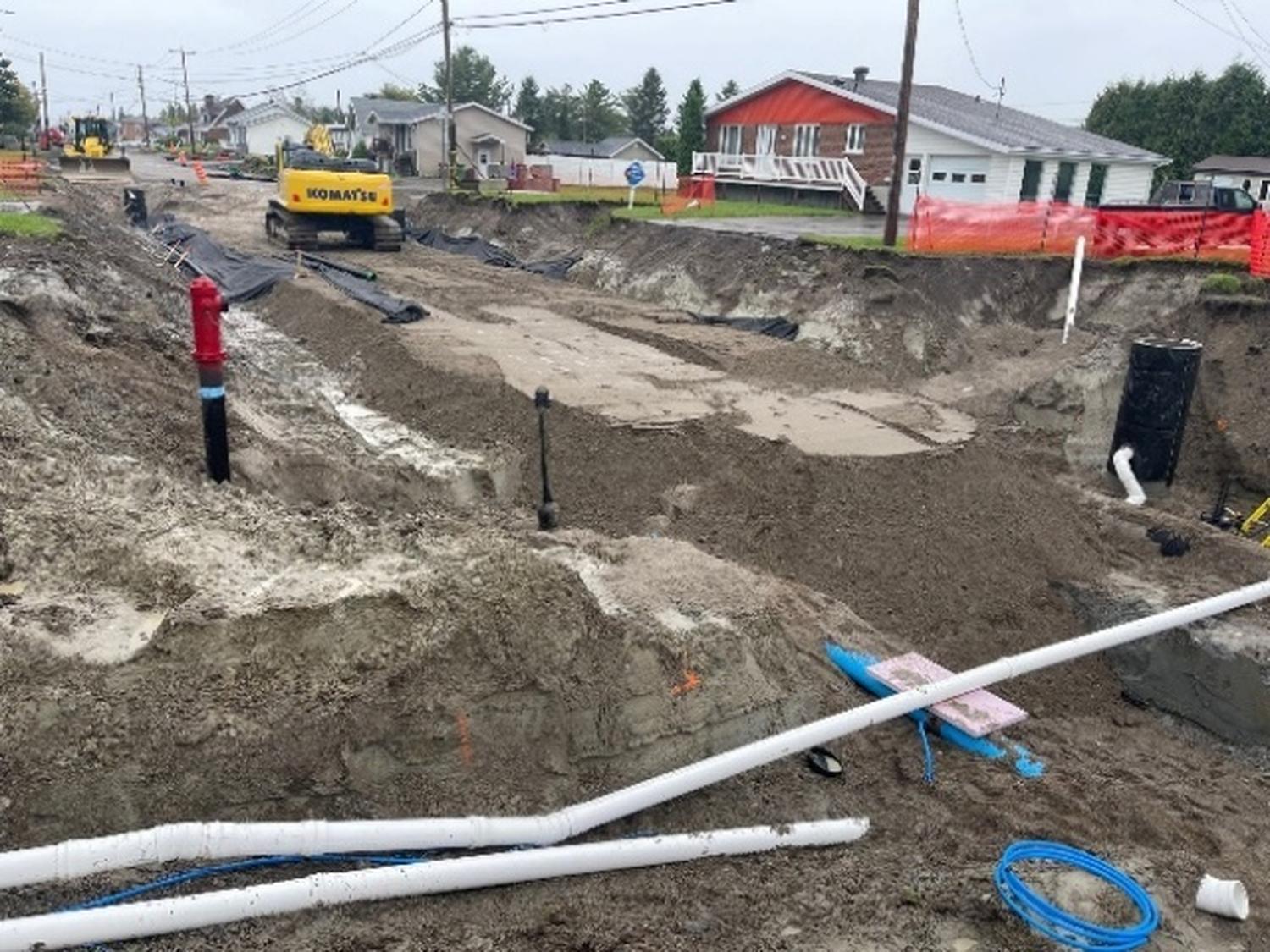 Le Groupe Conseil CHG a été mandaté par la Ville de Saint-Honoré pour assurer la surveillance des travaux de réfection du boulevard Martel sur une distance de 1,6 km. Ce projet d’envergure comprenait le terrassement, l’aménagement de la chaussée, l’ajout de branchements de services aux propriétés riveraines ainsi que l’installation de drainage, de réseaux de distribution d’eau potable et d’égouts sanitaire, unitaire et pluvial. Les travaux incluaient également l’implantation de feux de circulation ainsi que l’aménagement de trottoirs et de bordures. Le chantier exigeait des interventions spécialisées, notamment sur le réseau souterrain de télécommunication de Bell, l’ajout d’un régulateur de pression sur le réseau d’eau potable, l’installation de boucles de détection pour les feux de circulation, le remplacement d’un ponceau et la gestion de sols contaminés. La remise en état des terrains privés et la réalisation du marquage constituaient les dernières étapes du mandat.